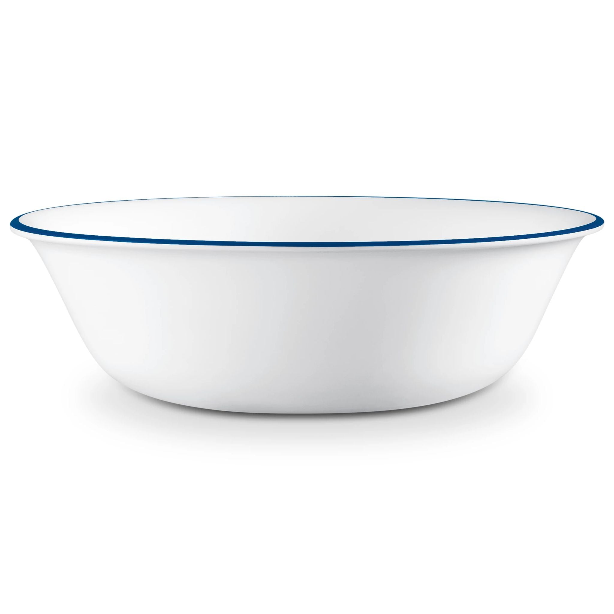 This blue rimmed bowl gives this versatile bowl a touch of edgy color. The bowl coordinates with our Caspian Lace collection and many others.