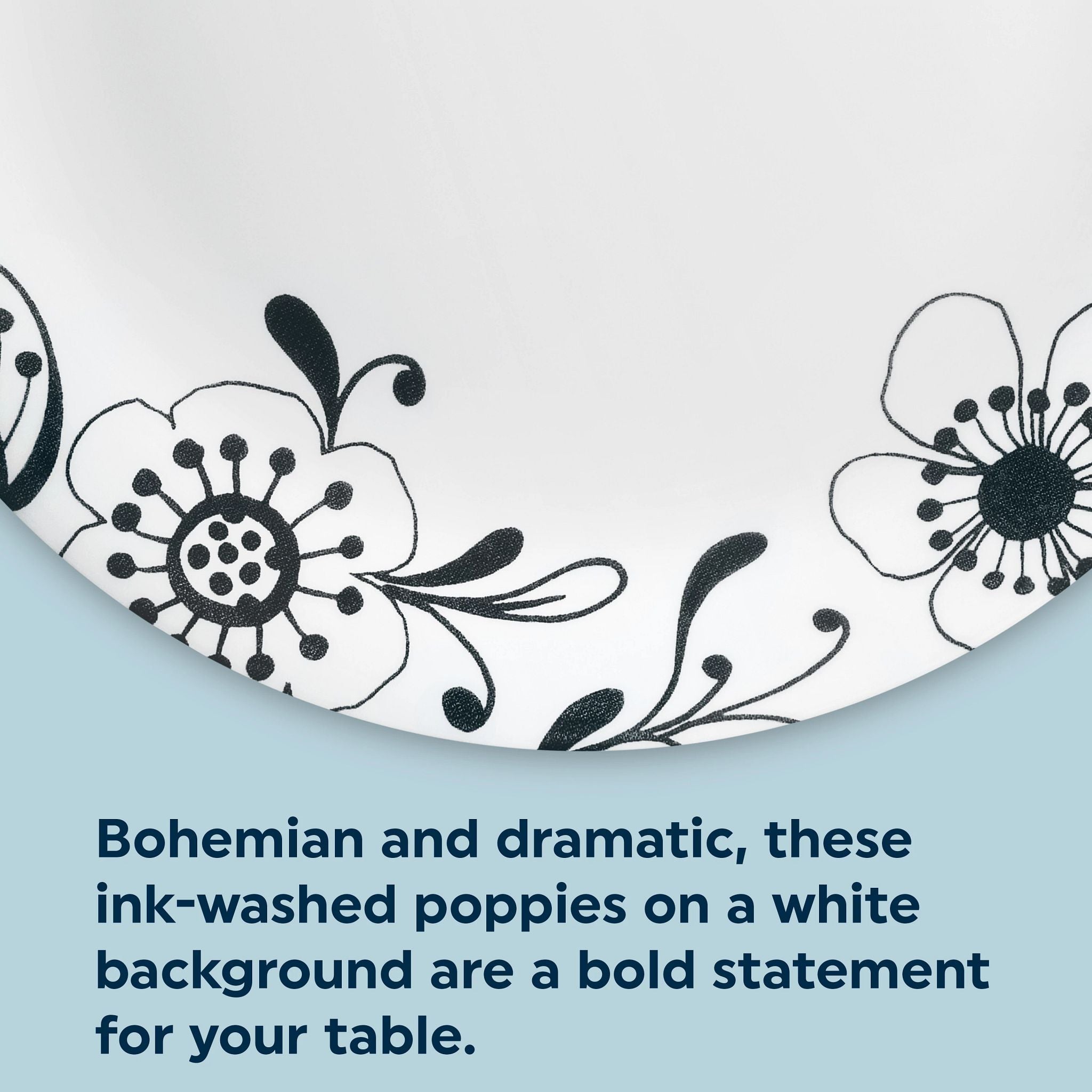 A modern pattern with a hint of floral tradition. this dramatic design is a bold statement for your table.